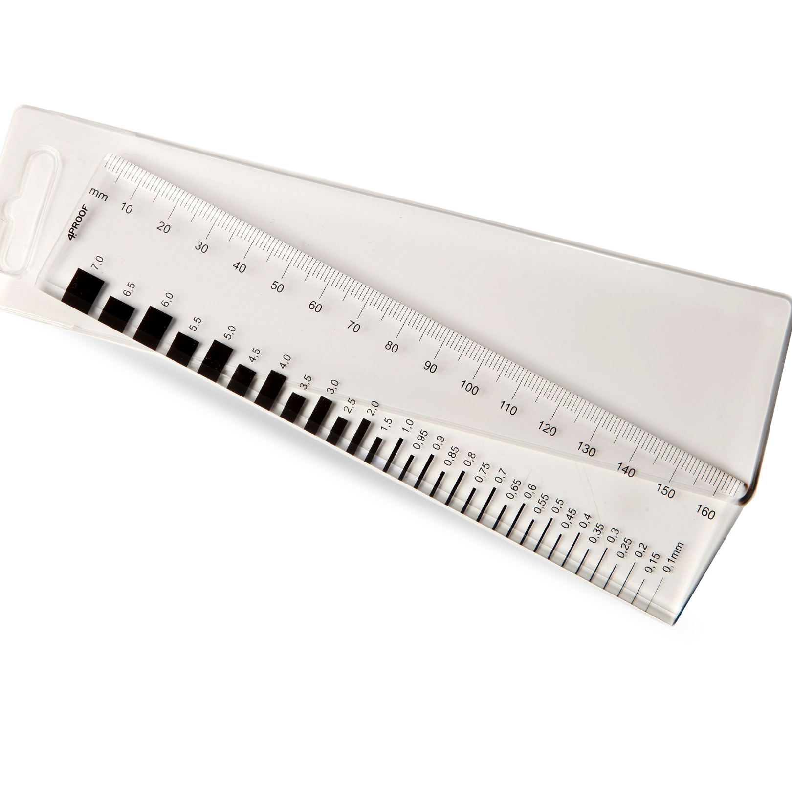 Erweiterter Messbereich: Zusätzliche Skalierung von 1,0 bis 7,0 mm in 0,5 mm Abstufungen für größere Risse.